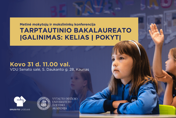 2026 m. kovo 31 d. Erudito licėjus kartu su Vytauto Didžiojo universiteto Švietimo akademija kviečia švietimo bendruomenę į kasmetinę konferenciją, skirtą Tarptautinio bakalaureato (IB) programų patirčių ir galimybių diskusijai. Konferencija vyks VDU Senato salėje (S. Daukanto g. 28, Kaunas). Renginio pradžia – 11:00 val., dalyvių registracija vyks nuo 10:30 val.
