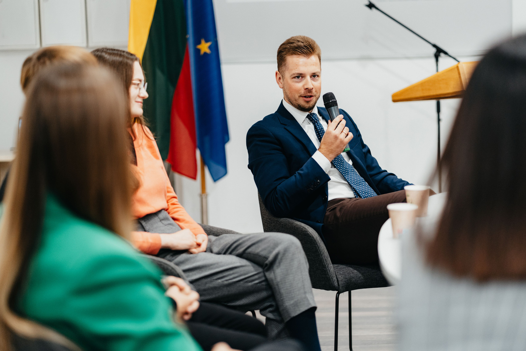 Spalio 3 d., Seimo lankytojų biure vyko Vytauto Didžiojo universiteto (VDU) Švietimo akademijos renginys „Kuriant ateitį: būsimųjų ir jaunųjų mokytojų bendrystė“. VDU Švietimo akademija subūrė savo studentus, dėstytojus, absolventus, partnerius į švietimo renginį, kur pasidalins savo patirtimi, įkvepiančiomis istorijomis apie pedagogo profesijos kasdienybę, bendrystę ir ateitį! Renginyje VDU Švietimo akademijos kanclerė prof. dr. Lina Kaminskienė pasveikino atvykusius Kauno rajono savivaldybės, Alytaus miesto savivaldybės Jaunojo pedagogo klubo mokinius. Renginyje dalyvavo edukacinio startuolio „BBright“ įkūrėjai Mykolas Kalmantavičius, Mantas Vičius, kurie papasakojo apie savo nestandartinį kelią į švietimo ateitį. Diskusijoje „Mokytojo diena iš arti: įprasta ir neįprasta kasdienybė“ – Vytauto Didžiojo gimnazijos istorijos mokytojas Tomas Vaitkūnas, „KD international school of Vilnius“ pradinių klasių mokytoja Fausta Bagdonaitė, VDU Švietimo akademijos Specialiosios pedagoginės pagalbos: logopedijos II kurso studentė Dovilė Plukaitė, Mokomojo dalyko pedagogikos: istorijos ir geografijos pedagogikos II kurso studentas, mokytojas Laimis Genevičius atskleidė, kas juos įkvėpė rinktis pedagogo kelią ir kokie yra švietimo iššūkiai. Diskusiją moderavo lrytas.lt verslo vystymo vadovė Greta Ališauskaitė-Bagušauskienė.