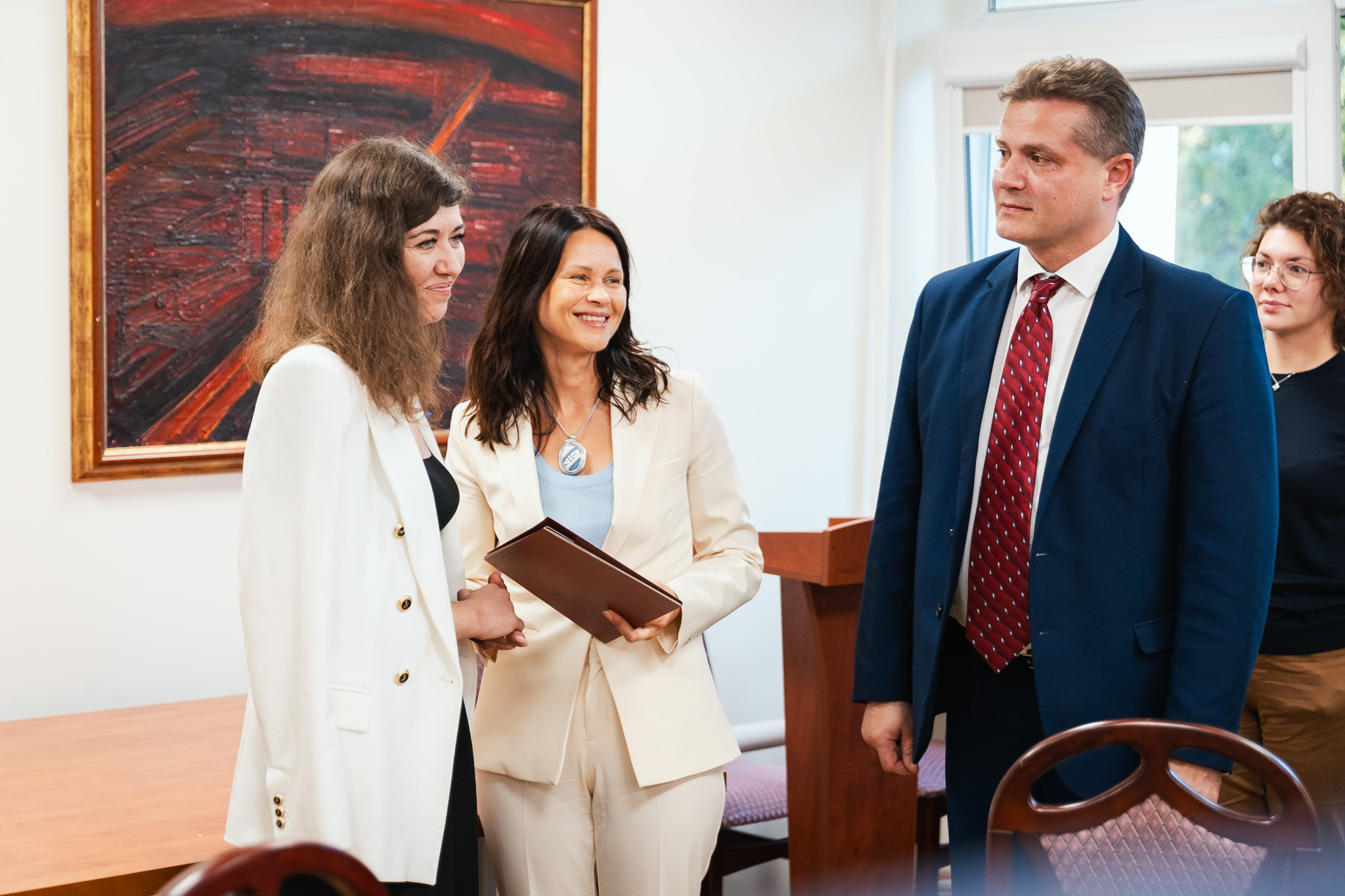 Susitikimo metu VDU Komunikacijos prorektorė Vilma Bijeikienė kalbėjo apie universiteto indėlį, lietuvos diasporą ir akademinę tinklalaiveiką. Kartu su VDU Gamtos mokslų fakulteto dekanu Sauliumi Mickevičiumi įteikė jubiliejinį VDU šimtmečio medalį Ukrainos Aukščiausiosios Rados Tarpparlamentinių ryšių su Lietuvos Respublika parlamentinės grupės pirmininkei Julijai Ovčinikovai. Šiam jubiliejiniam VDU šimtmečio medaliui, įsteigtam Lietuvos universiteto įkūrimo metinėms, VDU Gamtos mokslų fakultetas nominavo Juliją Ovčinikovą.