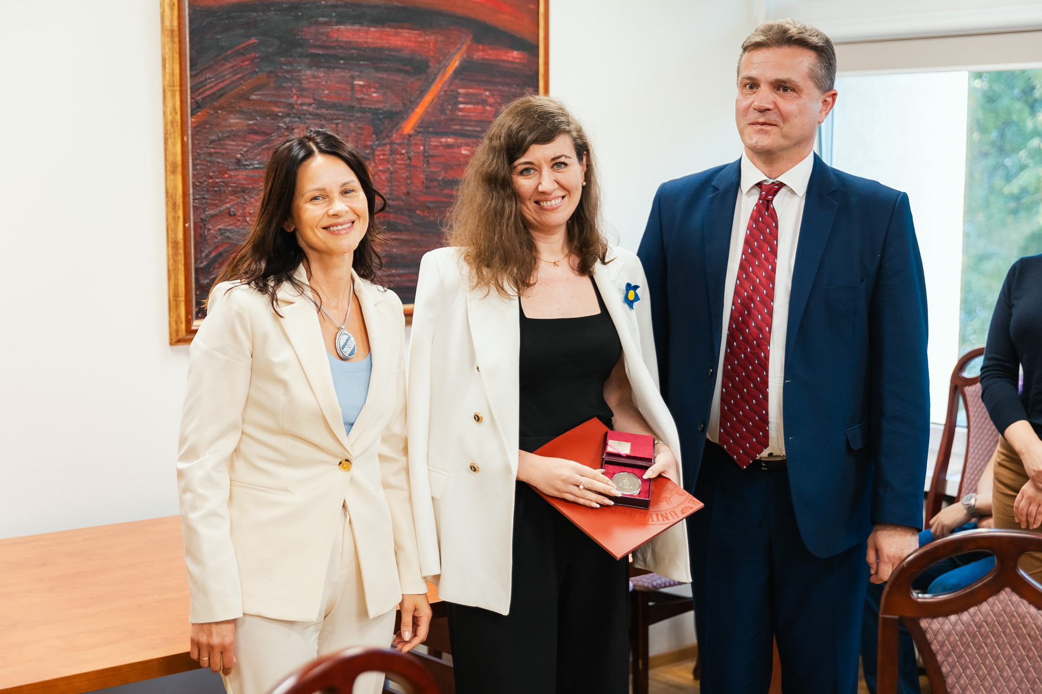 Ukrainos Aukščiausiosios Rados Tarpparlamentinių ryšių su Lietuvos Respublika parlamentinės grupės pirmininkei Julijai Ovčinikovai įteiktas VDU šimtmečio medalis
