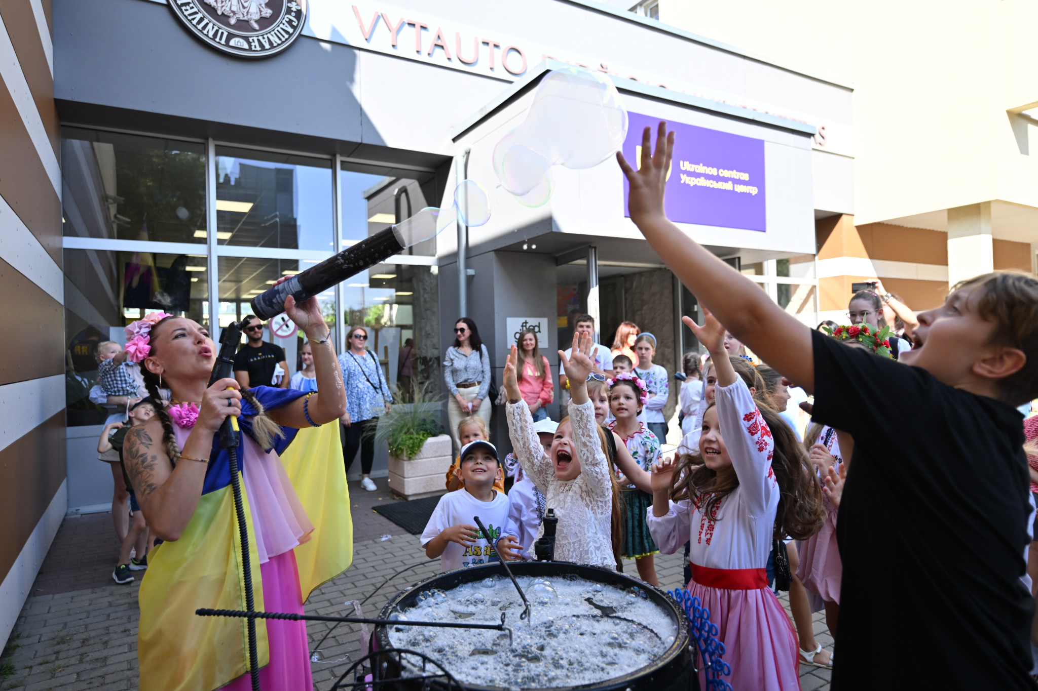 Šią vasarą trečiąsyk Ukrainos centre įvyko vasaros stovyklos, kurios subūrė tiek ukrainiečių, tiek lietuvių vaikus. Stovyklose dalyvavo net 111 vaikų. Šios vasaros stovyklos tema – „Kelionės aplink pasaulį“, tad kiekvieną stovyklos savaitę vaikai per skirtingus užsiėmimus, žaidimus ir patyrimines veiklas nagrinėjo skirtingus pasaulio žemynus: Šiaurės ir Pietų Ameriką, Aziją, Afriką ir Europą. Su ukrainiečiais dirbanti VDU Tarptautinių ryšių koordinatorė Laura Lapinskė pabrėžia gavusi ne vieną svarbią pamoką. „Šiandien ir minėjime skambėjo ukrainiečių moterų bei vaikų chorų, atlikėjų dainos, man gera, kuomet centre tiek dienos metu, tiek vakarais vyksta repeticijos, dirbtuvės bei paskaitos. Džiaugiuosi galėdama prisidėti prie centro veiklų, per kurias iš darbuotojų ir savanorių kolektyvo nuolat mokausi sutelktumo, dėmesingumo, atkaklumo, bendrystės. Čia jaučiu stiprią bendruomeniškumo, savitarpio pagalbos ir palaikymo dvasią, kuri įkvepia toliau veikti, kurti ir rūpintis vieni kitais“, – sako L. Lapinskė.