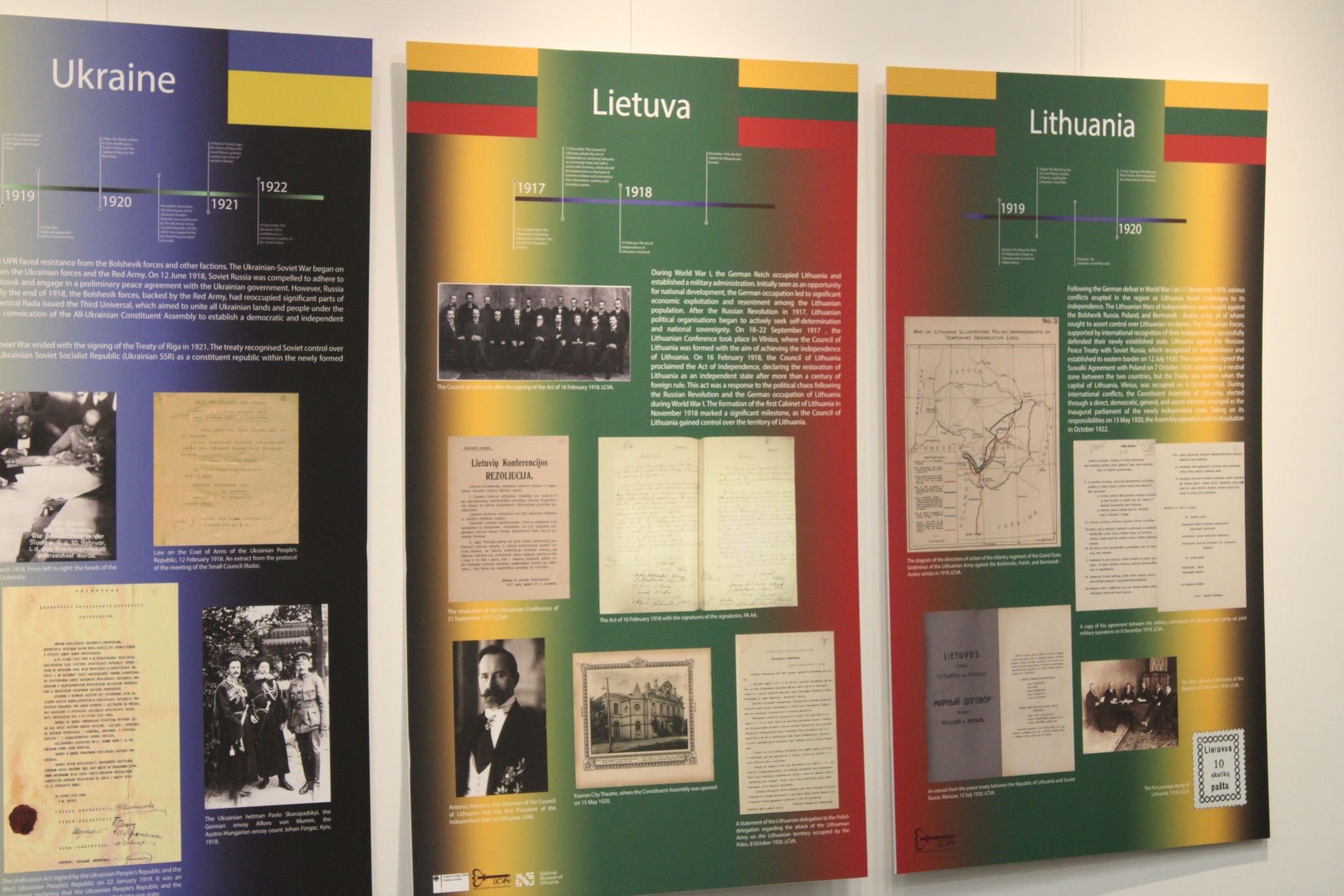 Ekspozicija parengta bendradarbiaujant su septynių valstybių – Suomijos, Estijos, Latvijos, Lietuvos, Lenkijos, Vokietijos ir Ukrainos – istorinės atminties institucijomis. „Esu labai dėkingas Kauno regioninio valstybės archyvo vadovui Gintarui Dručkui, kurio parengta paroda sudaro pagrindą dabartinei ekspozicijai. Jo dėka turėjau galimybę ekspozicijoje pateikti kruopščiai sukauptą, kai kada primirštą, archyvinę medžiagą – politinių ir visuomenės veikėjų nuotraukas bei svarbiausius šių tautų valstybingumą patvirtinančius dokumentus, tokius kaip nepriklausomybės deklaracijos (įskaitant Vasario 16-osios Aktą), autentiški protokolai ir kt. Juose atsispindi dvišaliai ir daugiašaliai regiono šalių santykiai Pirmojo pasaulinio karo ir pokario metu, taip pat dokumentai, žemėlapiai verčia vėl ir vėl permąstyti, su kokiais iššūkiais ir grėsmėmis buvo susidurta anuomet, kokia jėga destabilizuoja regioną dabar“, – parodos eksponatus aptaria L. Mažylis.